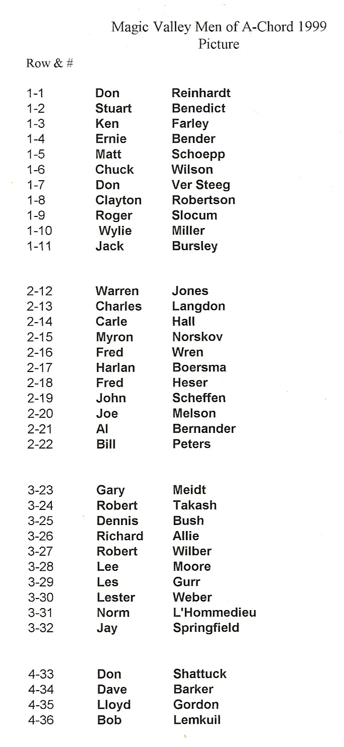 Chorus 1999 Photos provided by Joe Melson. See names of Chorus in next photo. |
